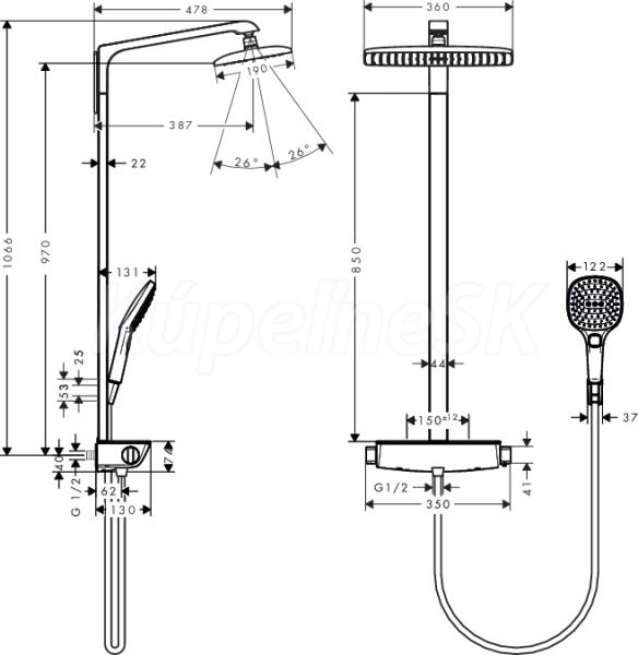 Hansgrohe Raindance Select E 360 1jet termostat. sprchový stĺp,EcoSmart,chróm 27286000