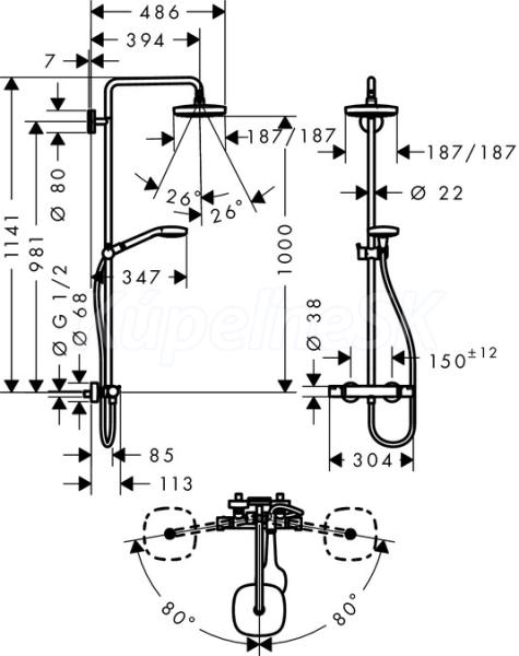 Hansgrohe CROMA Select E Showerpipe 18cm 2jet termostatická sprchová batéria,EcoSmart biela/chróm 2725400 úsporná verzia EcoSmart 9 l /min: