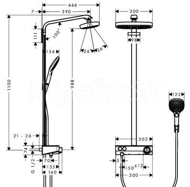 Hansgrohe RAINDANCE Select E Showerpipe 300 2jet EcoSmart,termostatická sprchová batéria, sprchové rameno 380 mm,biela/chróm 27283400 úsporná verzia EcoSmart: