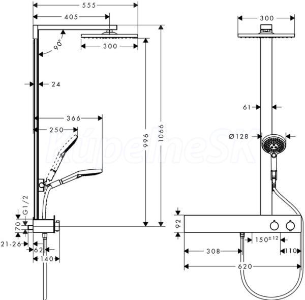 Hansgrohe 27364000 RAIDANCE E Sprchový set termostat s hlavovou a ručnou sprchou,chróm