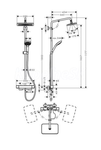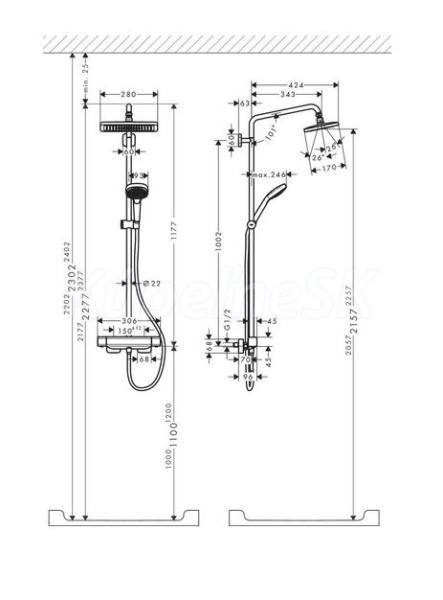 Hansgrohe 27660000 Croma E termostatický stĺp 280 EcoSmart 1jet, chróm