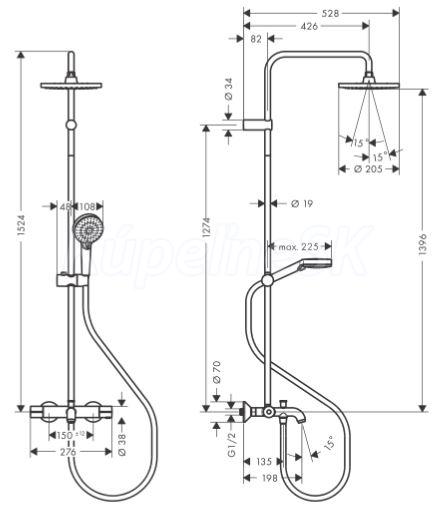 dĺžka sprchového ramena: 426 mm