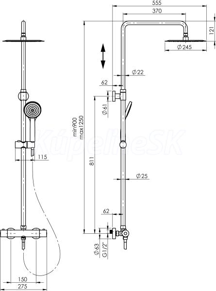 - Regulovateľná výška hlavovej sprchy 779 - 1250 mm
