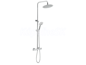 kategória distribúcie Novaservis: Sprchový program | Sprchové sety. Prvotriedne chrómové prevedenie. Set obsahuje termostatickú batériu s rozostupom 150 mm. Súčasťou balenia je hlavová sprcha v SLIM DESIGN s priemerom 250 mm, kovová hadica 150 cm a 1-polohová ručná sprcha. Nastaviteľná výška setu je 890 - 1300 mm.