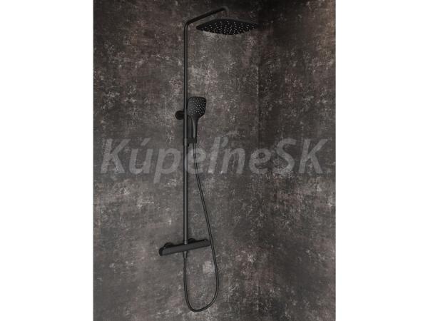 Sprchový stĺp Flat termostatický, posuvný, so sprchovým setom. V čiernom matnom vyhotovení.