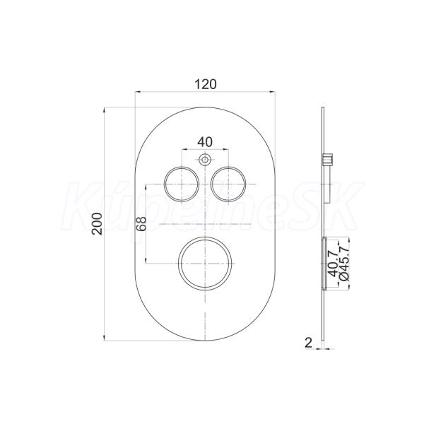 Vaňový set s termostatickou podomietkovou tlačidlovou batériou, 2-cestná, oválny kryt, so sprchou, hadicou, držiakom a stenovým vývodom