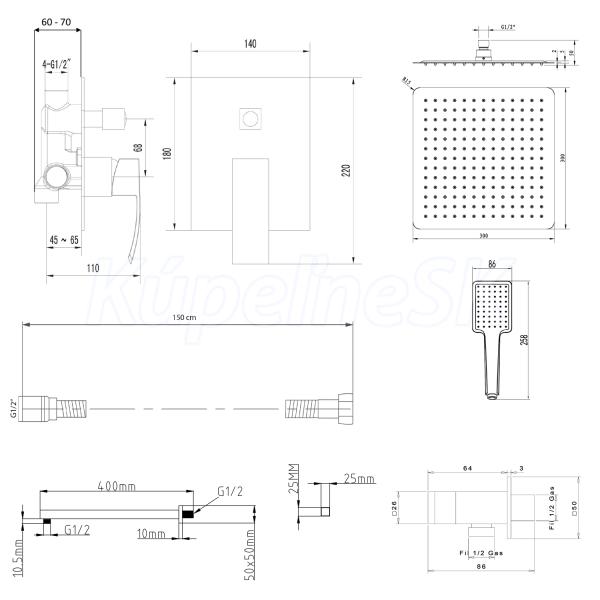>> Batérie vodovodné >> Sprchové podomietkové systémy >> Sapho GINKO podomietkový sprchový set s pákovou batériou, 2 výstupy, čierna mat