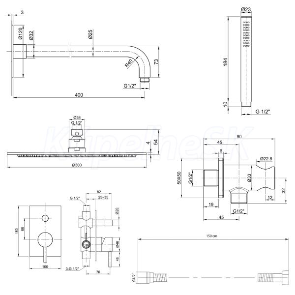 Sapho MINIMAL podomietkový sprchový set s pákovou batériou, 2 výstupy, nerez