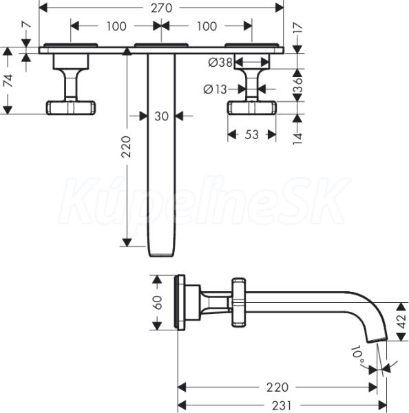 >> Batérie vodovodné >> Umývadlové batérie >> Axor Citterio 3-otvorová umývadlová batéria pod omietku,chróm