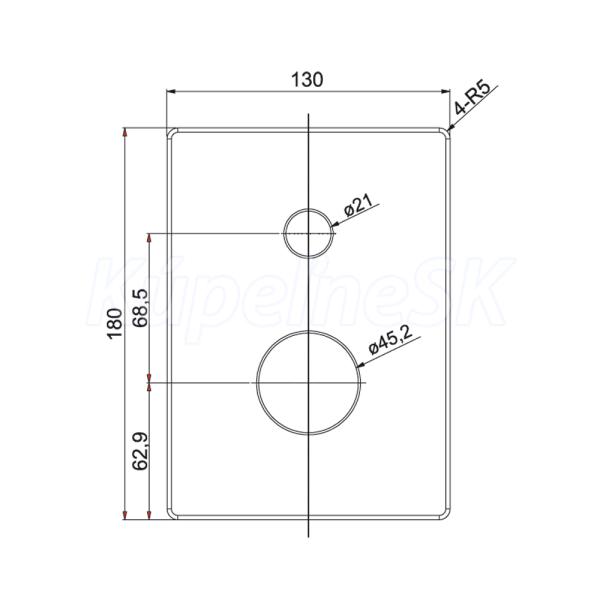 Kryt hranatý nerezový 130x180 mm pre podomietkové teleso CBE60101AB a CBE60107. Náhradný diel pre dvojcestné a trojcestné podomietkové batérie s hranatým krytom.