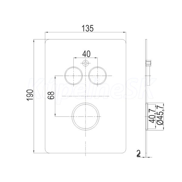 Kryt hranatý pre 2-cestnú podomietkovú termostatickú batériu, 135 * 190 mm