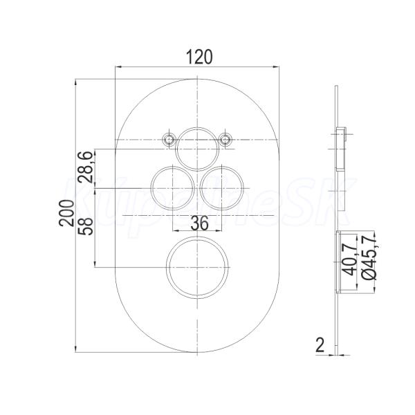 Kryt oválný pre 3-cestnú podomietkovú termostatickú batériu, 120 * 200 mm
