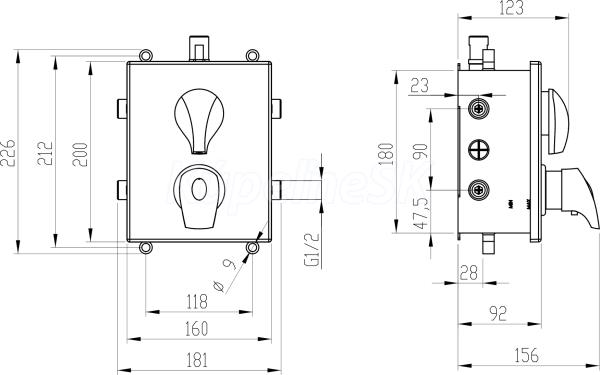 kategória distribúcie Novaservis: Vodovodní baterie | Termostatické baterie. Kvalitná a odolná, termostatická kartuš KEROX . so 7 ročnou zárukou. Prvotriedne chrómové prevedenie. Podomietková termostatická batéria s boxom pre 3 vývody vody a s keramickým prepínačom. Box je dodávaný spolu s krytom páky a prepínača.