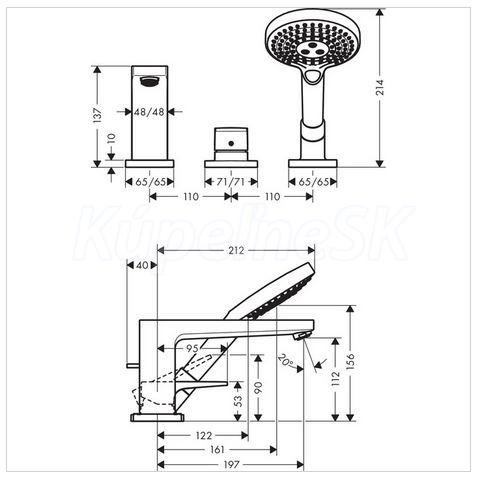 >>  Batérie vodovodné  >>  Vaňové batérie  >>  Hansgrohe 32550000 METROPOL 3-otvorová batéria na okraj vane s integrovanou sprchou, chróm