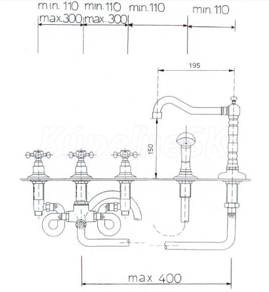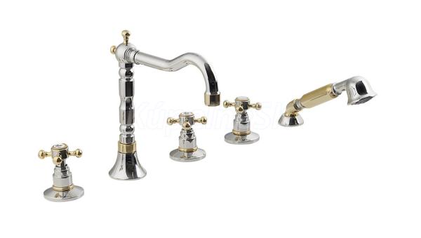 >> Batérie vodovodné >> Vaňové batérie >> Reitano Rubinetteria ANTEA päťprvková batéria na okraj vane s retro hubicou, chróm/zlato 3