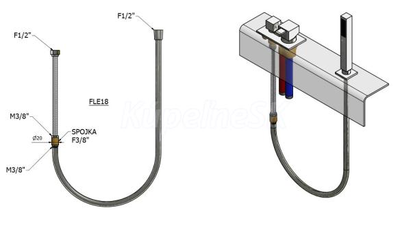 Sprchová hadica pre výsuvné sprchy na okraji vane. Toto riešenie umožňuje sprchovú hadicu plne z ,vane vytiahnuť, odpojiť od flexi hadice a vymeniť. Balenie obsahuje: flexi hadice M-3/8 "x F-1/2", 100 cm spojovací konektor F3 / 8 "x F3 / 8" x20 mm sprchová hadica M3 / 8 "x F1 / 2" x175 cm (1/2 "Kónusový matka) v ,kónusu sprchovej hadice je ukrytý systém Anti-twist, ktorý zabraňuje nepríjemnému prekrúteniu a teda predlžuje životnosť výrobku Pripojenie ku stojankové batérii F1 / 2 "