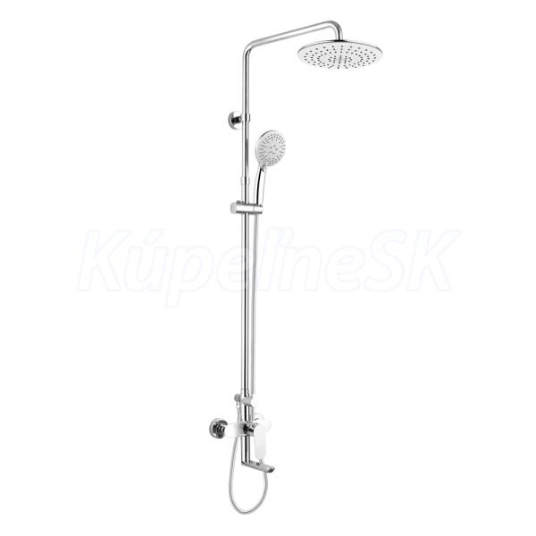 Viana vaňová nástenná batéria 150 mm, s nastaviteľnou teleskopickou tyčou, šedostriebornou sprchovou hadicou 150 cm, ručnou a hlavovou guľatou sprchou, o 226 mm, biela