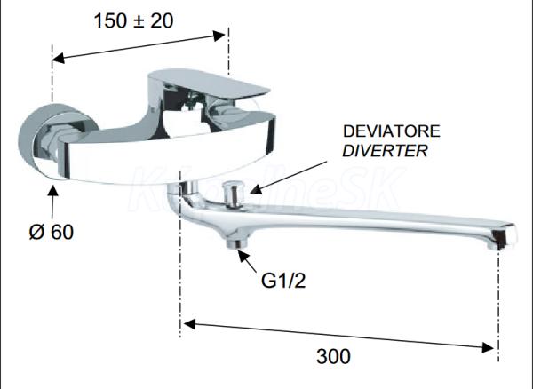 • Umývadlová/vaňová batéria nástenná s prepínačom