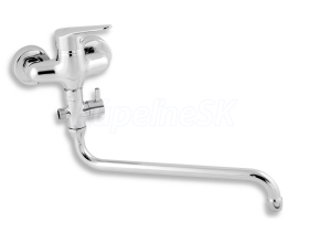 kategória distribúcie Novaservis: Vodovodní baterie | Panelákové baterie. Kvalitná a odolná, keramická kartuš 35 mm . s 5 ročnou zárukou. . Prvotriedne chrómové prevedenie. Paneláková nástenná vaňová batéria s rozostupom 100 mm a trubkovým otočným výtokovým ramienkom s keramickým prepínačom v dĺžke až 330 mm.