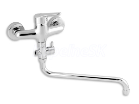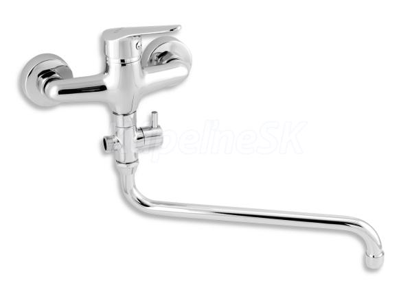 kategória distribúcie Novaservis: Vodovodní baterie | Panelákové baterie. Kvalitná a odolná, keramická kartuš 35 mm . s 5 ročnou zárukou. . Prvotriedne chrómové prevedenie. Paneláková nástenná vaňová batéria s rozostupom 150 mm a trubkovým otočným výtokovým ramienkom s keramickým prepínačom v dĺžke až 330 mm.