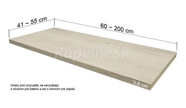 Na požiadavku zákazníka je možné dodať umývadlovú dosku v rozmere ATYP. Dĺžka dosky sa dá skrátiť maximálne o 20 a cm a šírka sa dá skrátiť maximálne o 4 cm.