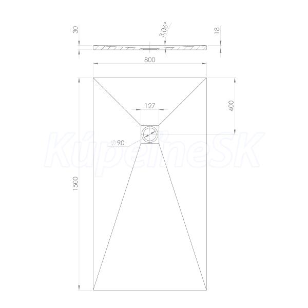Polysan TRENECA sprchová vanička 150x80x3 cm,možnosť krátenia,liaty mramor,Čierna matná