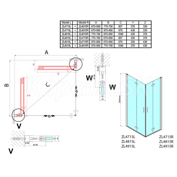 Polysan ZOOM obdĺžniková sprchová zástena 700x900mm, rohový vstup ZL4715R-02 ZL4715R-02