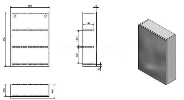 >> Kúpeľňový nábytok >> Zrkadlá a Zrkadlové skrinky >> Zrkadlové skrinky >> Aqualine VEGA galérka 50x70x18cm, dub platin