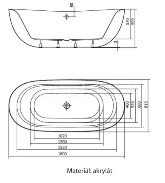 >> Vane + príslušenstvo >> Voľne stojace vane akrylátové >> Polysan ZASU voľne stojaca vaňa 180x81x58cm, biela