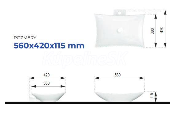 Ceramica Latina Swell keramické umývadlo na dosku 56x42x11,5 cm,bez prepadu,Biele