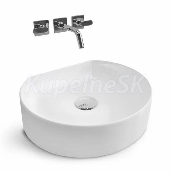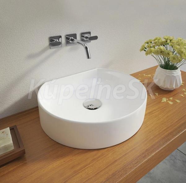 Kruhové keramické umývadlo so skosenou zadnou stranou bez otvoru pre batériu.