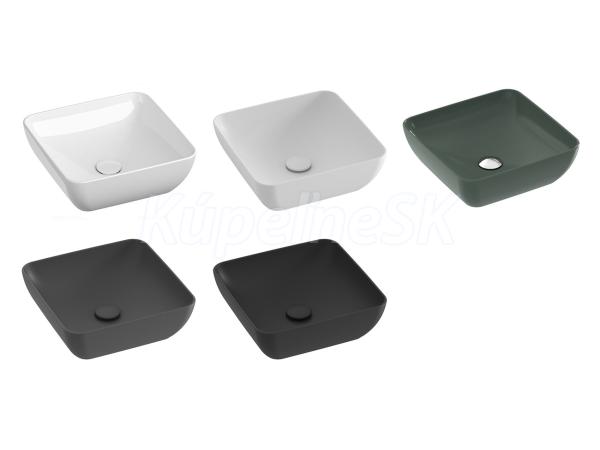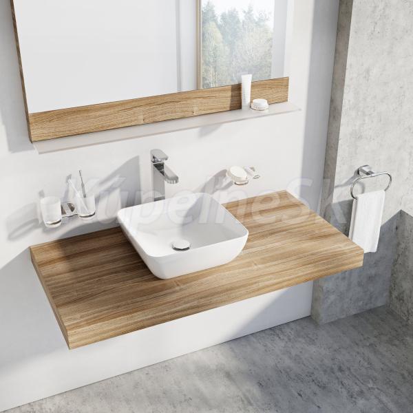 doplnky k dokúpeniu: doska pod umývadlo / skrinka pod umývadlo na dosku, umývadlová pileta pevná, keramická pileta Flat, sifón chrómový alebo nábytkový, extra predĺžené batérie Chrome II, 10°, Puri, Espirit alebo Eleganta