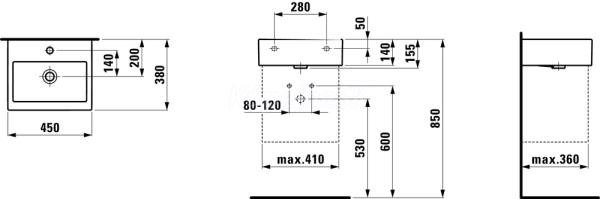 Umývadielko Veľkosť 450 x 380 x 155 mm s 1 otvorom pre batériu uprostred Biela farba 8.1543.2.000.104.1 Laufen Umývátko LIVING CITY bílá