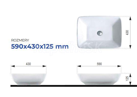 Obdĺžnikové keramické umývadlo, bez otvoru pre batériu.