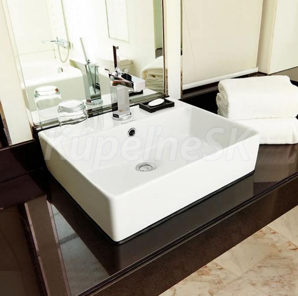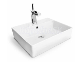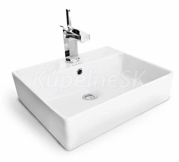 Obdĺžnikové keramické umývadlo s otvorom pre batériu, s prepadom.