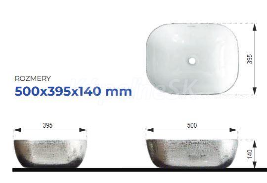 Ceramica Latina Silver obdĺžnik keramické umývadlo na dosku 50x39,5x14 cm Strieborné/Biele