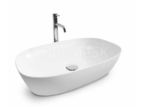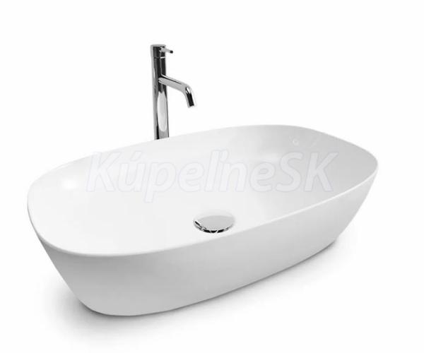 Obdĺžnikové keramické umývadlo so zaoblenými rohmi bez otvoru pre batériu.
