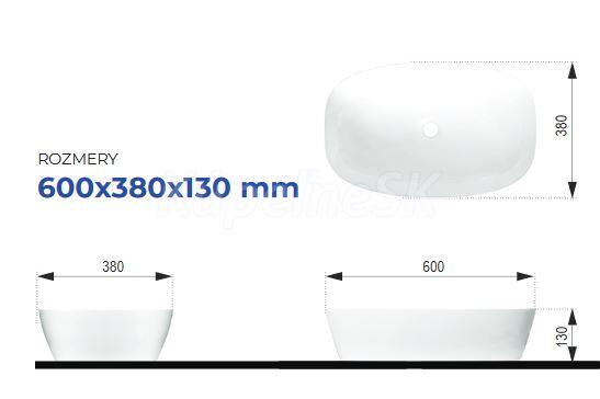 Ceramica Latina Loren 1 obdĺžnikové keramické umývadlo na dosku 60x38x13 cm Biele