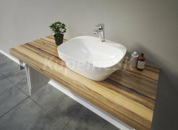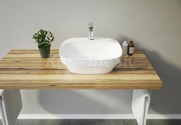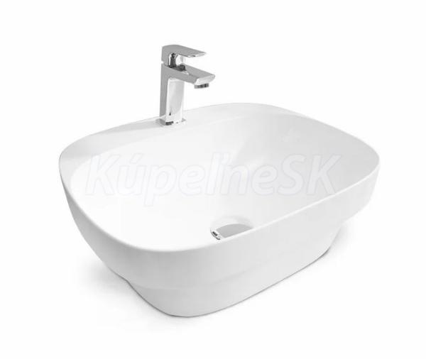Obĺžnikové keramické umývadlo so zaoblenými rohmi a otvorom pre batériu, bez prepadu.