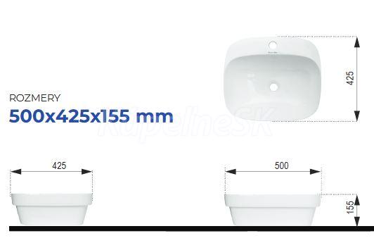>>  Umývadlá  >>  Umývadlá na dosku  >>  Ceramica Latina Grace 2 obdĺžnikové keramické umývadlo 50x42,5x15,5cm,otv. pre bat,Biele