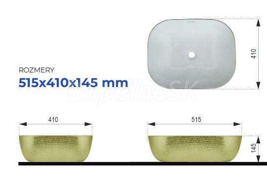 Ceramica Latina Aurus obdĺžnikové keramické umývadlo 51,5x41x14,5 cm,Zlaté/Biele