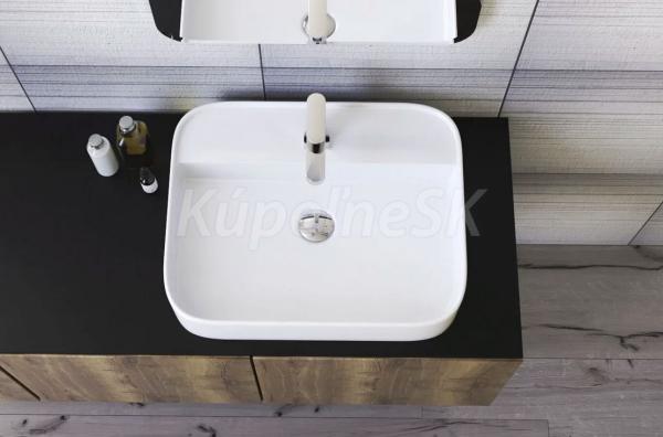 Obdĺžnikové keramické umývadlo so zaoblenými rohmi s otvorom pre batériu.