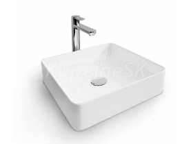 Štvorcové keramické umývadlo so zaoblenými rohmi bez otvoru pre batériu.