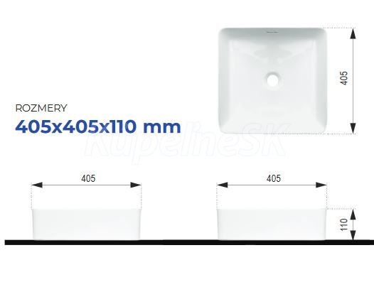 Ceramica Latina Pandora štvorcové keramické umývadlo na dosku 40,5x40,5x11 cm,Biele