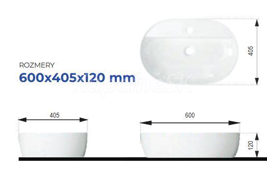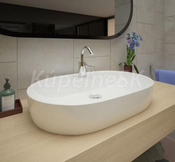 Oválne keramické umývadlo s otvorom pre batériu, bez prepadu.