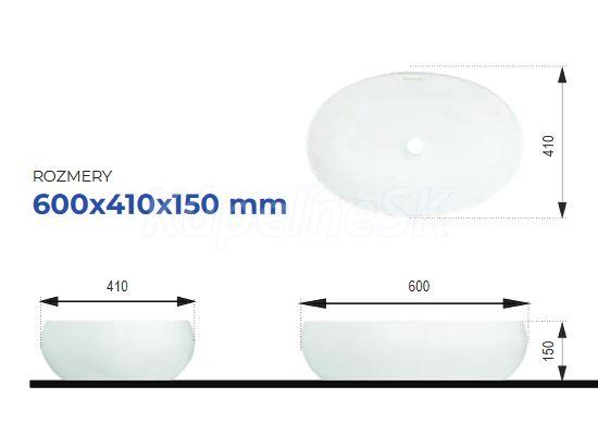 Ceramica Latina Bibi oválne keramické umývadlo na dosku 60x41x15 cm,Biele