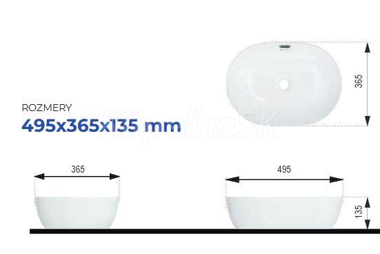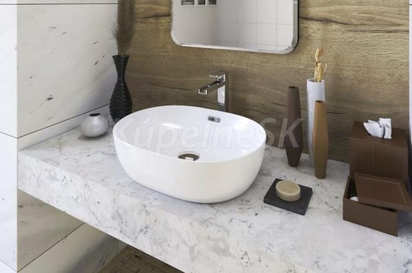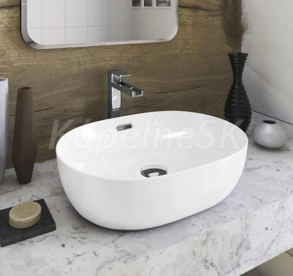 Oválne keramické umývadlo bez otvoru pre batériu s prepadom.