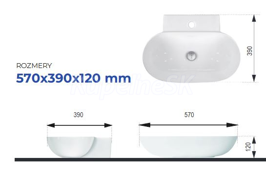 Ceramica Latina Bala oválne keramické umývadlo na dosku 57x39x12 cm,otvor pre bat,Biele