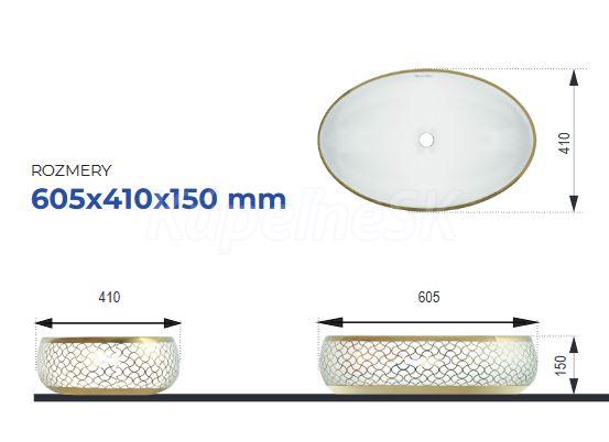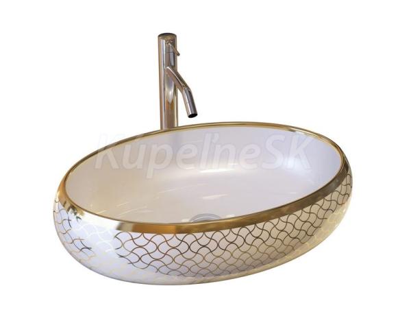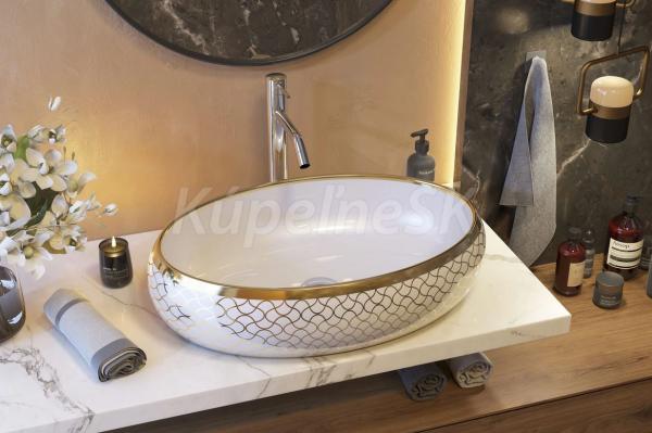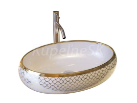 Ceramica Latina Pupa oválne keramické umývadlo na dosku 60,5x41x15 cm,Biele/Zlatá potlač