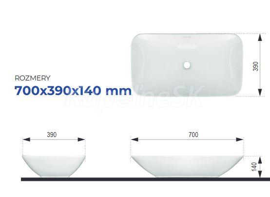 Ceramica Latina Forever obdĺžnikové keramické umývadlo na dosku 70x39x14 cm Biele